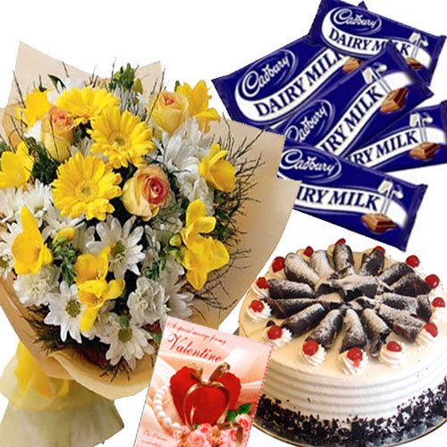 Celebrate your birthday todayBlack forest cake , mix flower bouquet & 5 cadbury 65 g each |