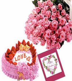 Pink is BeautifulA beautiful arrangement by our florist with 3 dozens pink roses and mocha heart shape cake w/ special greeting card. A nice gift when you fall in love with someone but don't know what to offer her. |