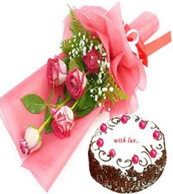 W/ loveHaft dozen pink roses bouquet w/ cake for your someone special.Your gift will come with a greeting card |