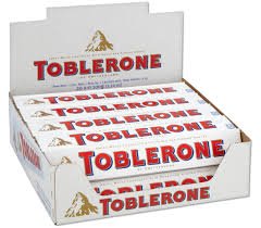 Delicious Swiss Toblerone, white chocolate with honey and almond nougat. Contains: 12 x Toblerone White 50 g.