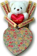 Cuddly Bear, I love pillow and 300 grm Toblerone in Heart shape box.