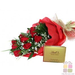 Love AbundanceRed Roses with 125g Lindt Swiss Thins Chocolate. |