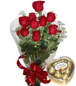 Love you eternallyDescription: Ferrero heart shape chocolate with 12 red rose bouquet to show your love one how much do you care for her. Your gift will come with a greeting card. |