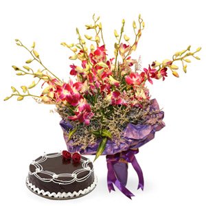 Orchids With Cake20 purple orchids with chocolate cake |