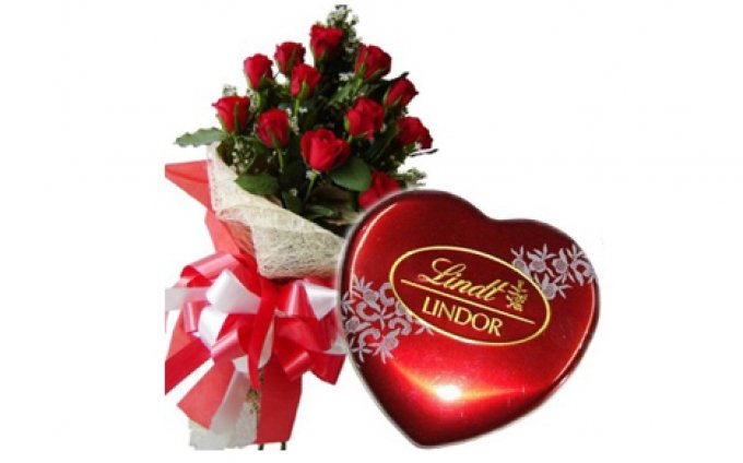 Red Roses + box of LindtBouquet of 12 Red Roses and a box of Lindt chocolates |