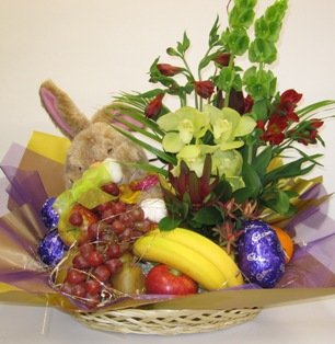 Always BeautifulThe perfect choice! - This Gift Basket is filled with 6 items fresh fruit, flowers and a few chocolate for them to enjoy. The best of both worlds. |