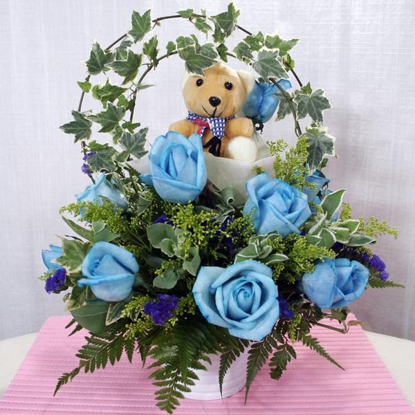 Blue Roses with a Bear