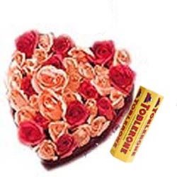 Feeling Soooo Blue...Let your sweetheart/ spouse/ loved ones know how much you miss 'em. (24 Orange & 12 red roses with tobleron (6 x 50gm) chocolate.) |