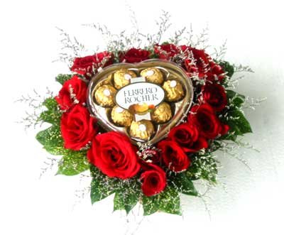 Love flowers24 red roses in heart shape with Ferrero heart chocolate. |