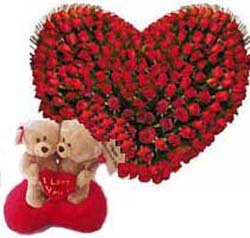 Miss You Soooo Much...A beary cute way to let your beloved/ friends/ near ones know how much he/ she is missed. (3 dozen red roses and couple bear). |