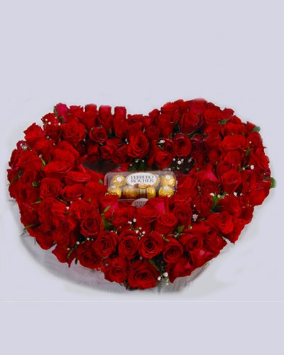 Sweet HeartLovely arrangement of 60 Red roses with a 16P Ferrero Rocher in the Center truly Sweet Heart…........... |