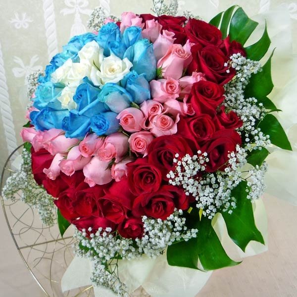 99 Roses ( 5white20blue33Pink41red) Hand bouquet