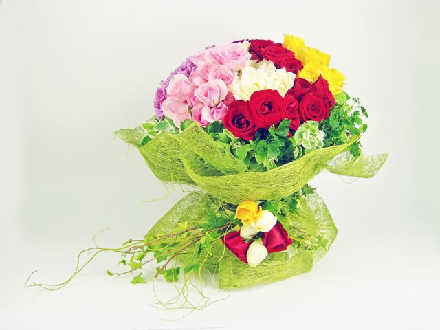 6 Red 6 Peach 6 white 6 yellow roses Bunch.