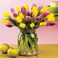 I'm always near to you20 pieces blue and yellow tulips are arranged in a glass vase just perfect for your love one. Note: Color may vary. |